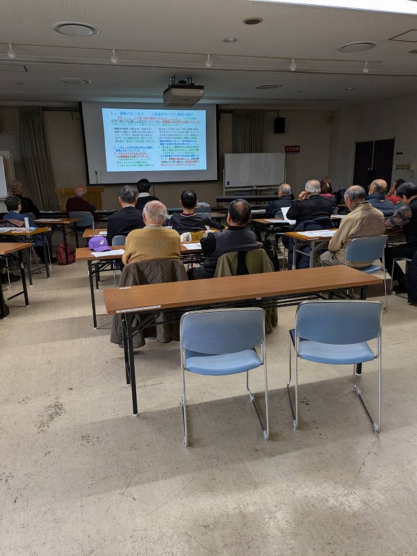 講演会の後は、今後定期例会(全員集会)を停止するため、それを明確するための臨時総会を開催し、運営委員会からの提案は承認されました。定期的な全員集会は一応終了しますが、湘現会を解散するわけでなく、実情に即した措置で、再開できる余地は十分のこしています。
