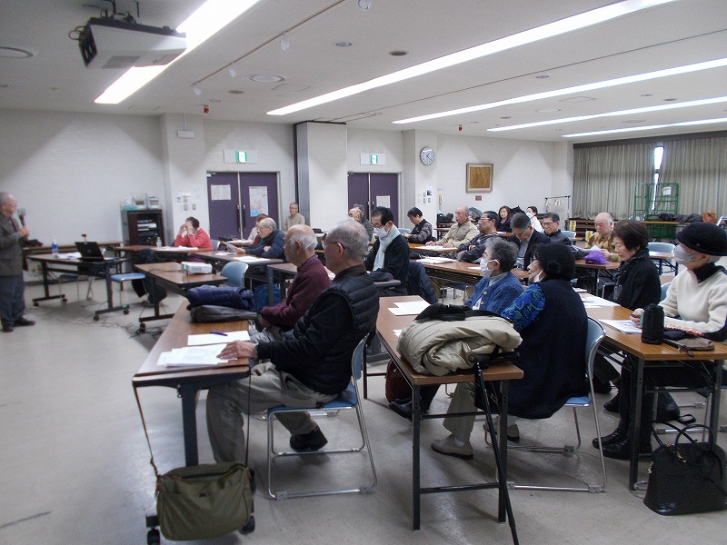 2月8日は総選挙投票日で小雪が舞う悪条件のなかの定例会となりましたが、節目となる例会ということもあり、29名の会員が参集しました。まず、会員の安倍氏による「25年に及ぶ市民活動で守った鎌倉広町の緑」の演題で、安倍氏が中心メンバの一員として広町の宅地化計画を知った時から、これを阻止するため、地域住民・一般市民・有識者を巻き込んで組織化し、長年にわたる反対運動を展開し、市、県、国を動かし、開発阻止に成功する経緯が照会されました。鎌倉の緑は現象の一途を辿っていますが、それに歯止めをかけることができた貴重な成功体験のお話でした。2月26日に予定されている歩こう会はこの広町の森を散策する計画です。
